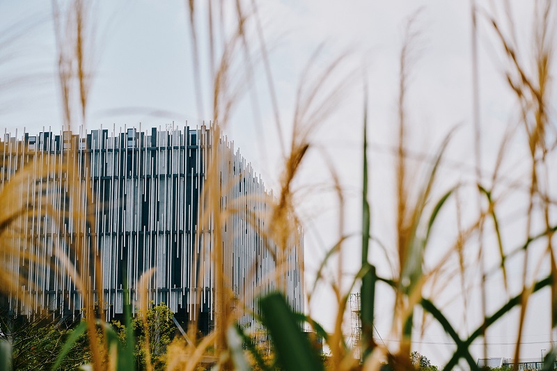 「照明設計是感性的認知與理性的校準。」在讀完地理環境後,有了感性的發想,便要進行設計細節與合適的燈具擇選。對朱文英而言,燈具和燈泡是工具,輔助最終光的呈現,燈具如何擺放、光的照度與色溫都需要不斷探測與校準,「例如生態區周圍,我們會漸漸的調降色溫,有時候甚至接近琥珀色。」另外,園區內也有許多與環境呼應的設計,例如仿生蘆葦的路燈,以及溪畔常見的豆娘圖案燈光投影,她與我們分享其中設計巧思:「若是以俯視的角度觀看,可以發現仿生蘆葦的路燈向大漢溪擺頭!」與環境共生、與生態共存。
