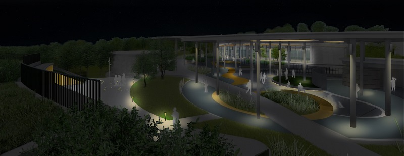 這將是一座結合藝術、生態、休閒及運動功能的美術館,聚焦戶外空間,主任說:「我們很期待這樣的空間能激盪出不一樣的對話形式!」新美館強調民眾參與、與生態共存,戶外場域間不以牆為屏障,讓民眾恣意走入,能參與藝術工作坊、觀賞藝術展演,或只是於園區內隨心悠晃。無論白日黑夜,都能看到藝術巧妙地融於自然,園區有著柔和與適合漫走的環境特質,除了陽光穿梭在錯落的廊道間,引領出恣意遊走的路徑,亦有一隱照明設計的兩位主理人劉炳毅與朱文英,揉合著人與建築、自然共融的光環境。
