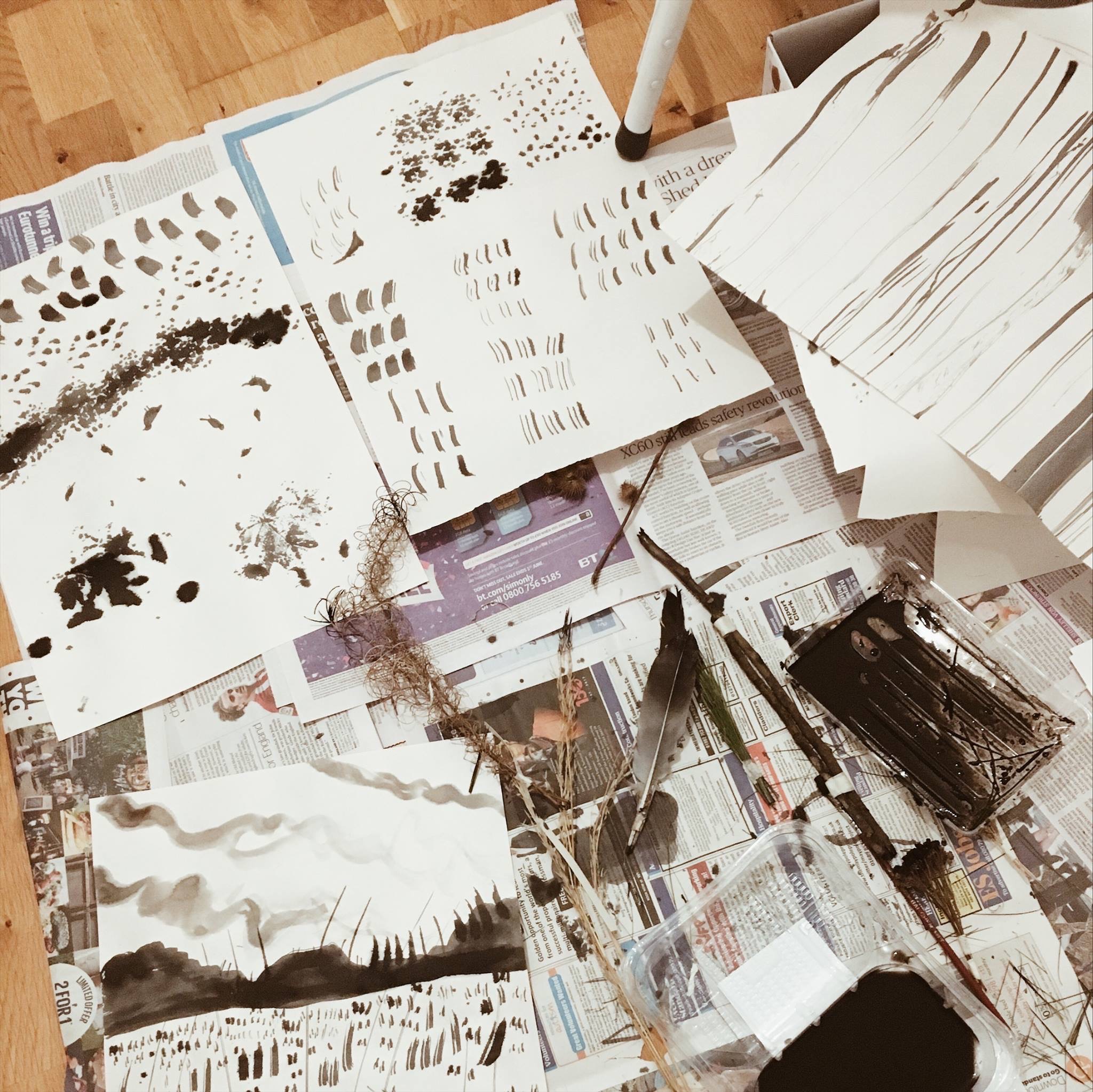 Could a painting experience offer more possibilities when paintbrushes are sourced from the natural environment surrounding the museum and can be easily assembled and customized?