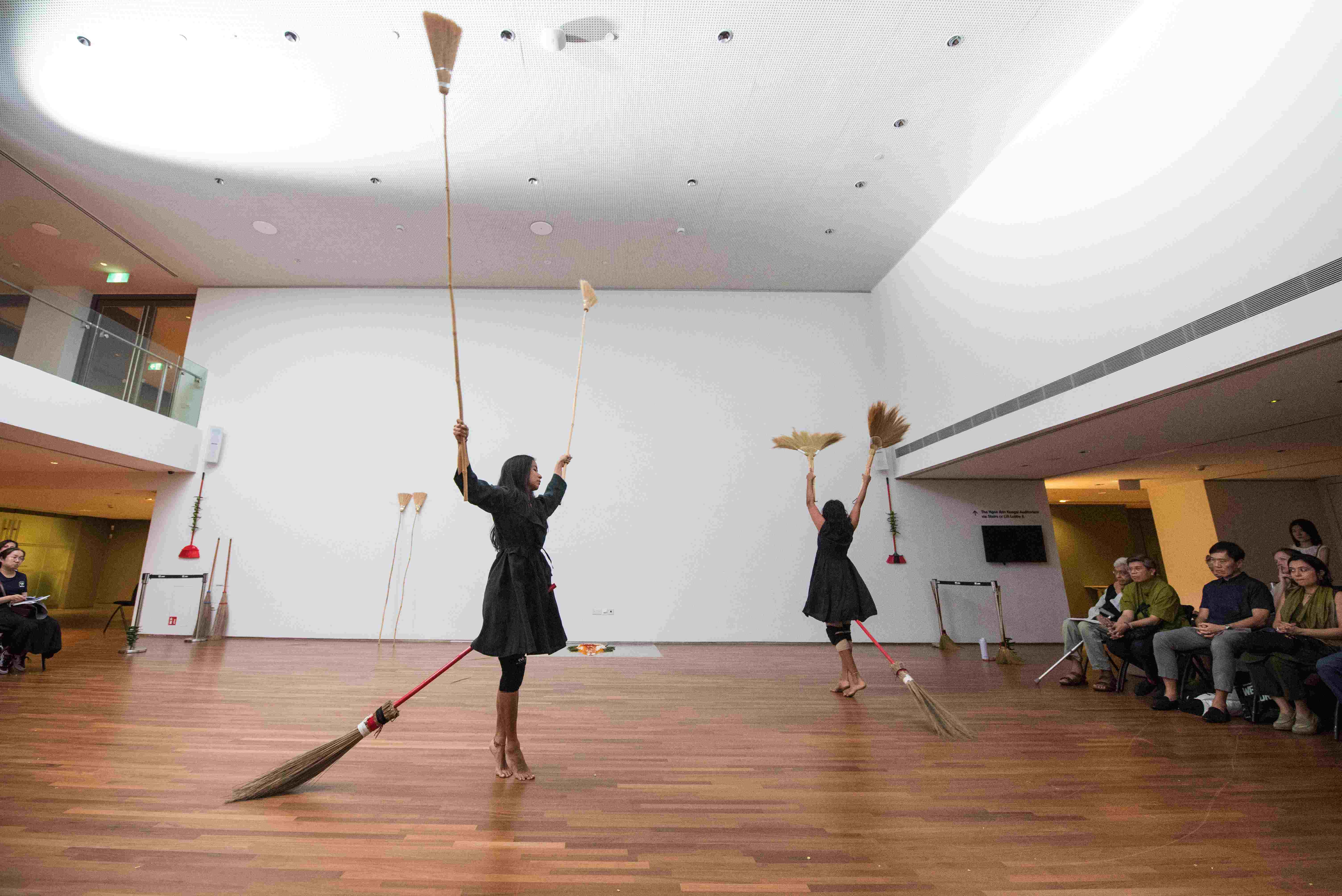 Through the evocative archetypes of "the witch" and "the maid," "Magic Maids: Sweeping Sisters" unearths a misogynistic framework in which these roles—both feared and controlled—exist along the same continuum. Jocson and Venuri's performance compels us to consider how deeply ingrained stereotypes influence perceptions of women’s labor and identity. With sweeping gestures and ritualistic movement, they invite the audience to question the boundaries between labor, art, and the politics of the female body, elevating simple actions into a powerful message on resilience and reclamation.