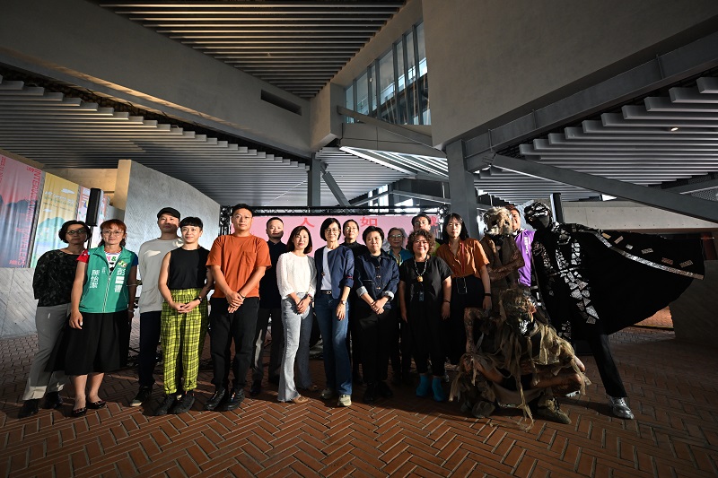 新北市政府文化局副局長、美術館籌備處陳春美主任、策展人謝豐嶸及貴賓、參展藝術家大合照。