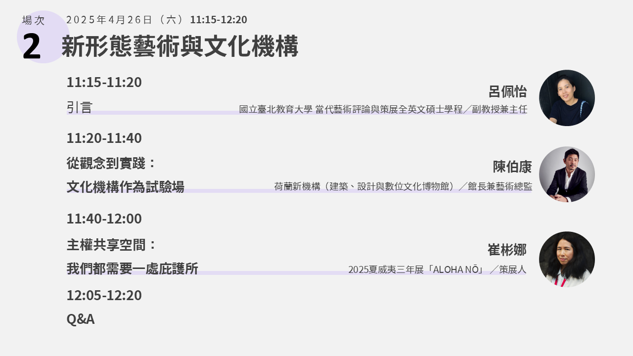 .11:15-12:20|場次二:新形態藝術與文化機構