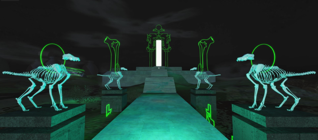 此外,本次展出試圖透過網路另闢一場重返《廢墟迷走》的旅程,以3件當代作品分別呼應《廢墟迷走》中不同型態廢墟的迷走路徑,其中李慈湄為本展創作的《凝結歷史殘響2.0:廢棄礦場的再聲張》,將帶領觀眾以聲響拜訪不同時空下的礦場空間與人文活動;劉玗於宜蘭中興紙廠創作的《我在裡面我可以還蠻放鬆的》,透過空襲倖存者、城市探索者、youtuber口述敘事展開旅程;而近年備受國際矚目的新媒體藝術團隊涅所開發NAXS Corp.與音樂人Meuko! Meuko!則在本展首次展出2020年由西班牙L.E.V藝術節委託製作的《鬼島─獸觀》線上體驗版本,結合夢境書寫、音景採集、3D掃描、電子噪音、數位雕塑,在即時遊戲引擎(Realtime 3D Engine)中,將無序的都會街景和資訊轉化為虛擬地景,觀眾每次的線上觀看皆是當下即時生成的感官體驗。