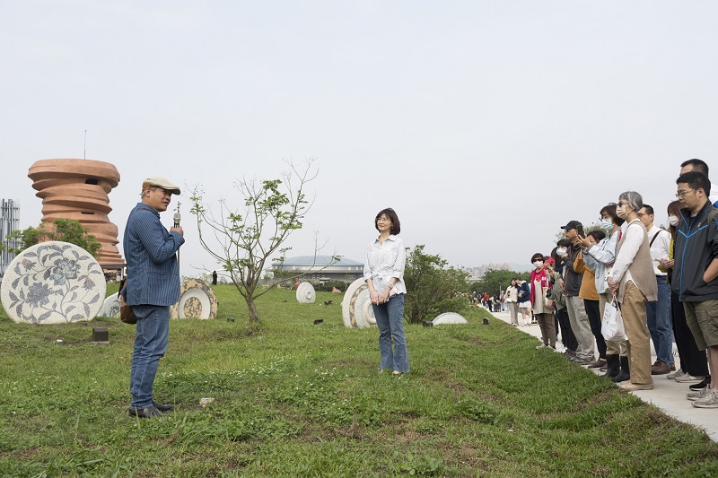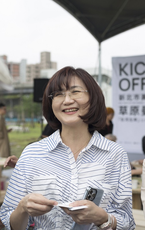 新北市文化局長張䕒育參與新美館園區「草原曼波」開幕活動。