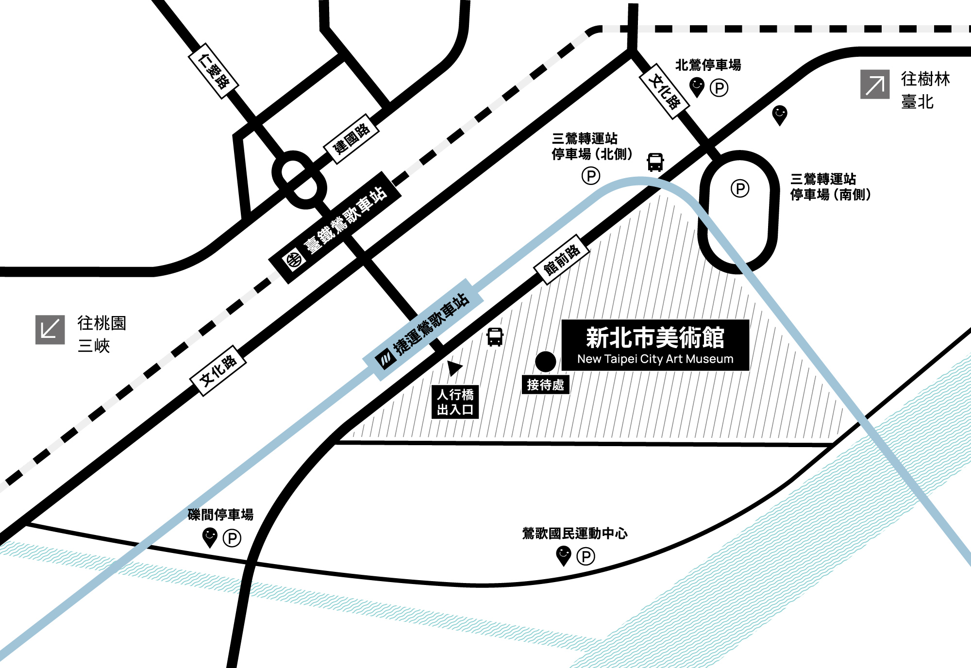 新北市美術館園區,由美術館主體建築、新美聚所及戶外的戶外園區所組成,是結合藝術、生態與休閒的公共場域。